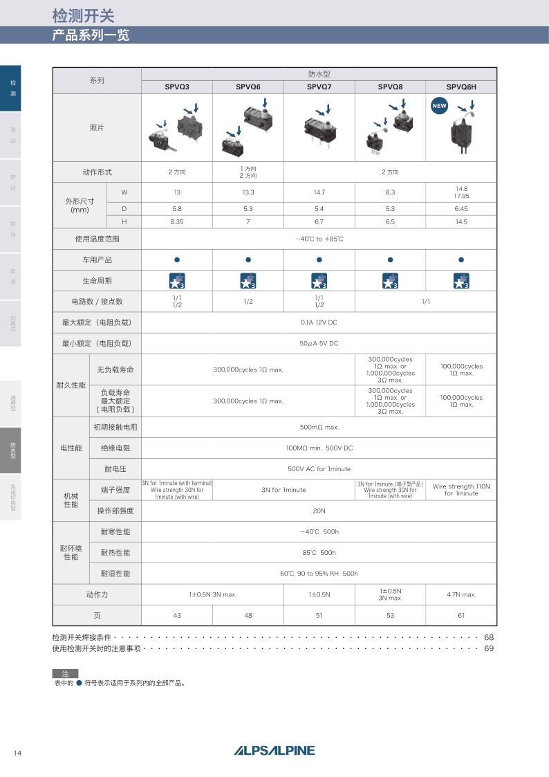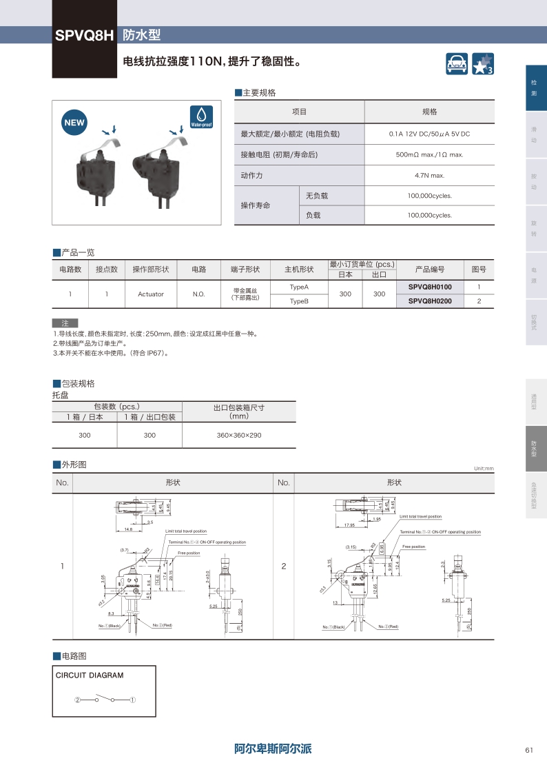 1 | 1 | Actuator | 帶金屬絲(下部露出) | 4.7N max. | N/O | 帶螺絲孔 (Type A) | 6.45×14.8×14.5mm |