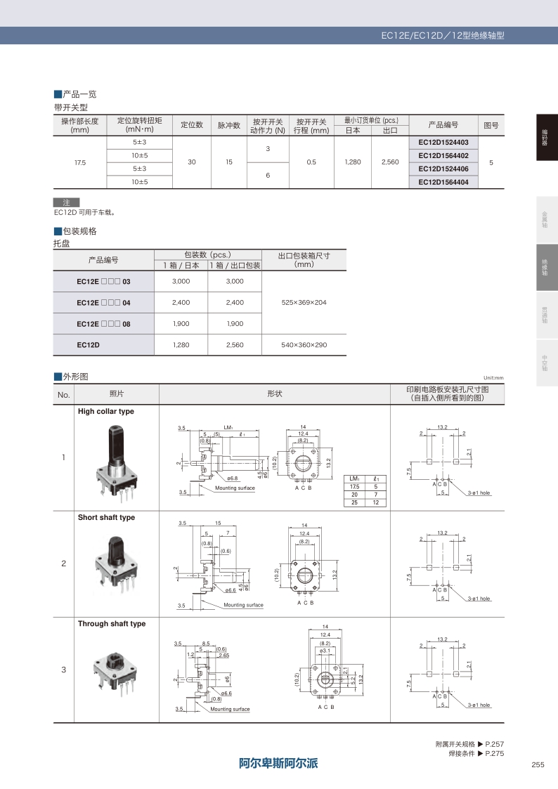 EC12D系列——ALPS絕緣軸編碼器