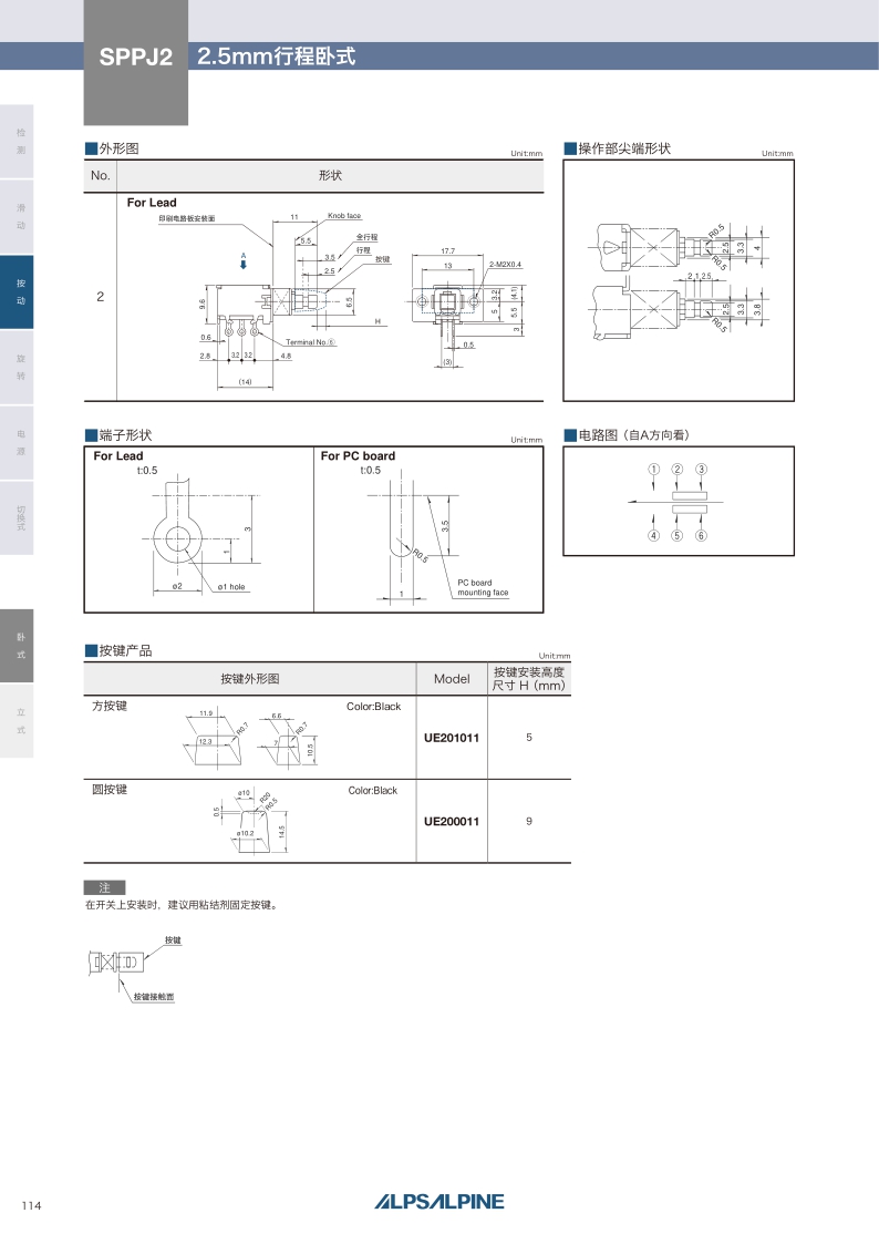 | 產(chǎn)品編號 | 照片 | 切換時限 | 行程 | 全行程 | 動作力 | 安裝方法 | 電路數(shù) | 動作 | 端子形狀 | 尺寸(W×D×H) |