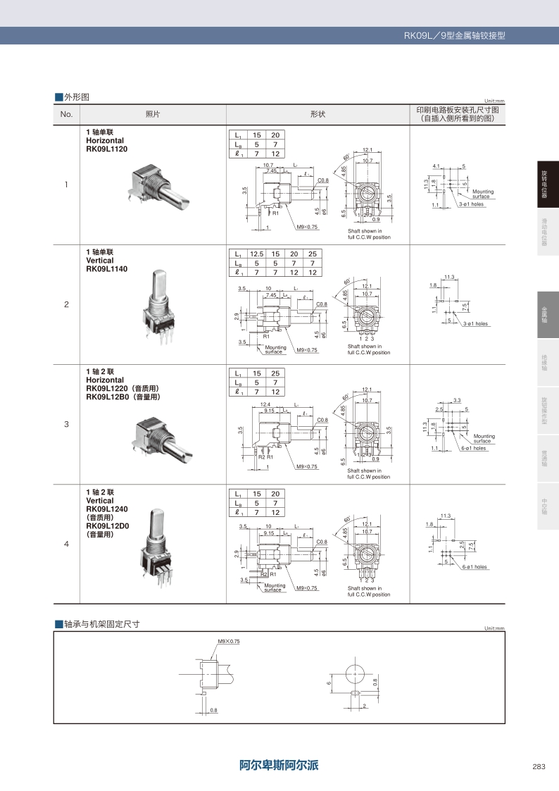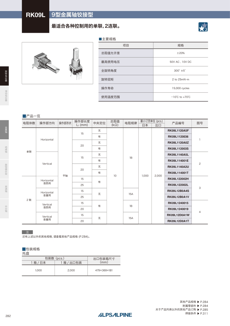 RK09L系列——ALPS金屬軸電位器