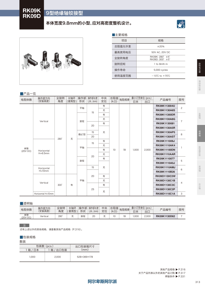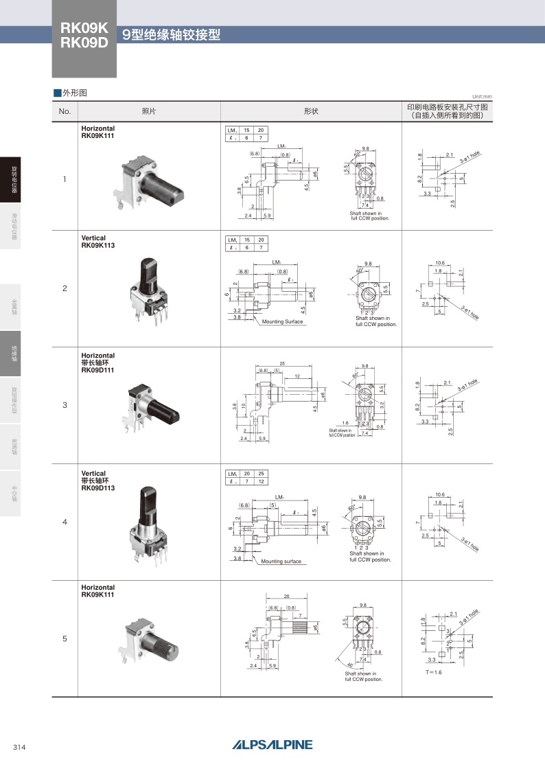 RK09K/RK09D系列——ALPS絕緣軸電位器