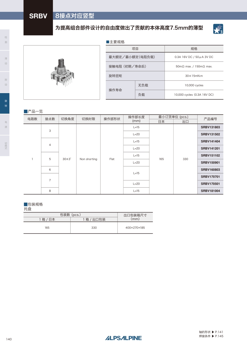 SRBV150901 照片 1 5 30±3° Non shorting 30±15mN·m Flat L: 20mm 16.2×18.5×7.5mm