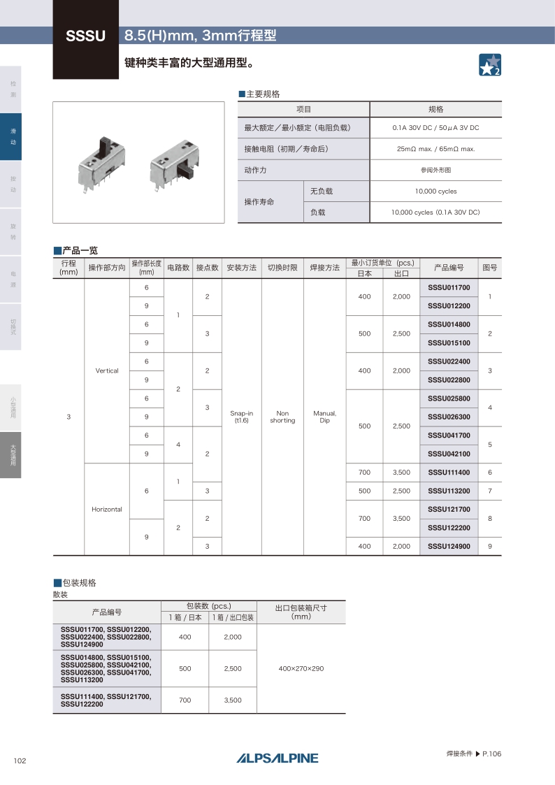 采購:SSSU系列——ALPS滑動開關