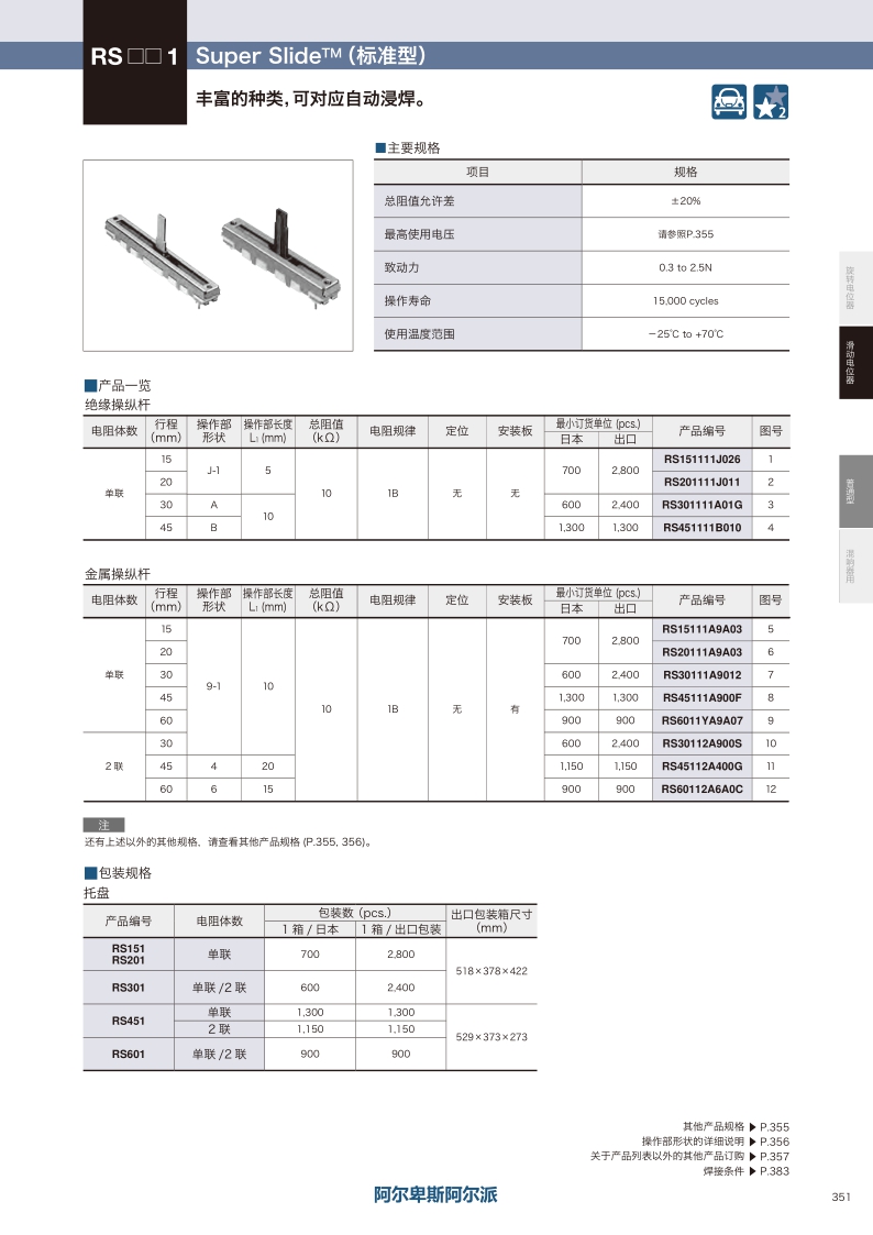 RS601系列——ALPS滑動電位器