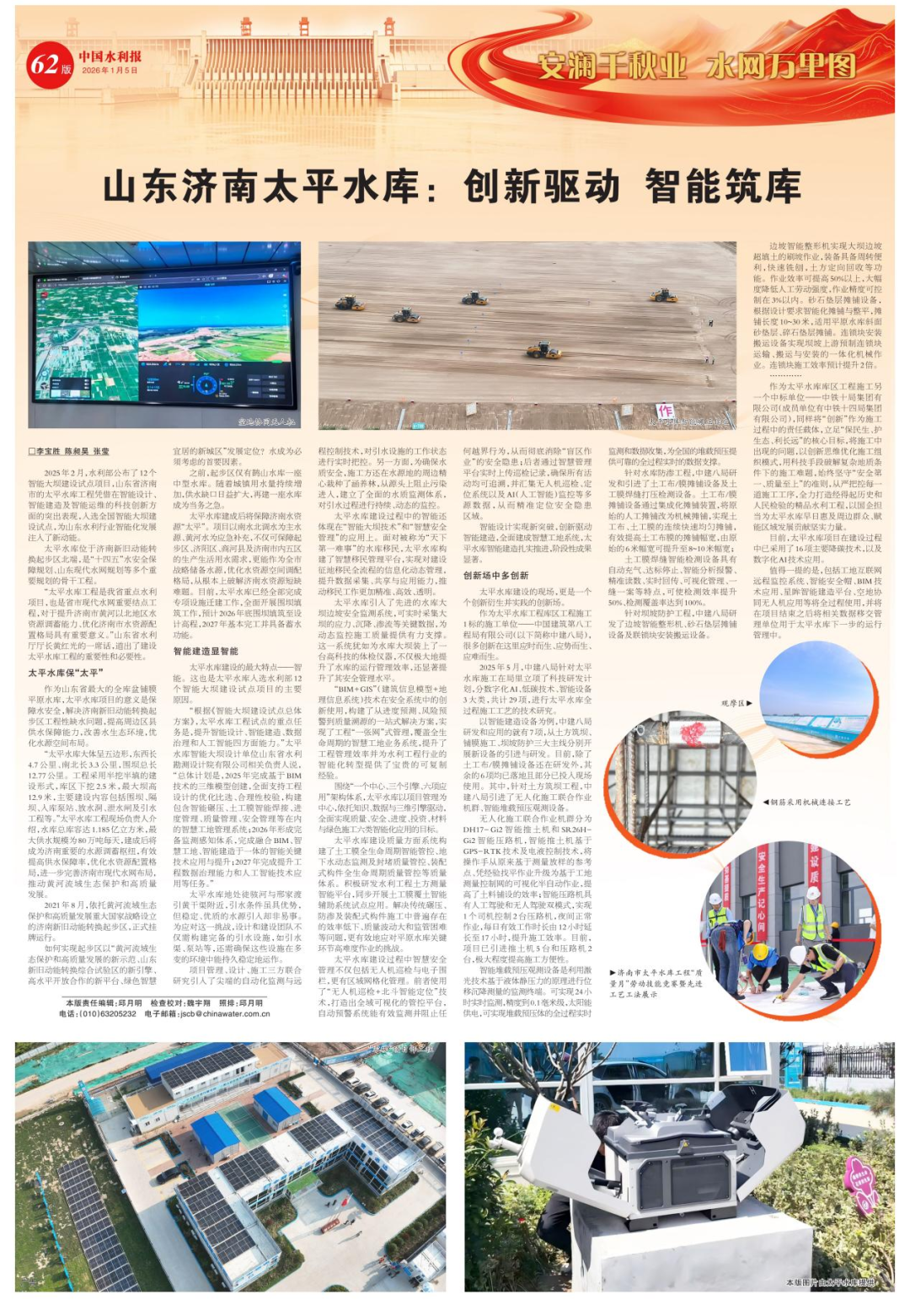 ? ? ? ?1月5日,《中國(guó)水利報(bào)》刊登的《山東濟(jì)南太平水庫(kù):創(chuàng)新驅(qū)動(dòng) 智能筑庫(kù)》通訊稿件中,對(duì)濟(jì)南城投集團(tuán)建設(shè)的太平水庫(kù)工程的重要性以及科技創(chuàng)新方面的突出表現(xiàn)進(jìn)行了報(bào)道。